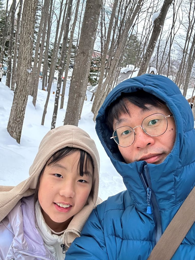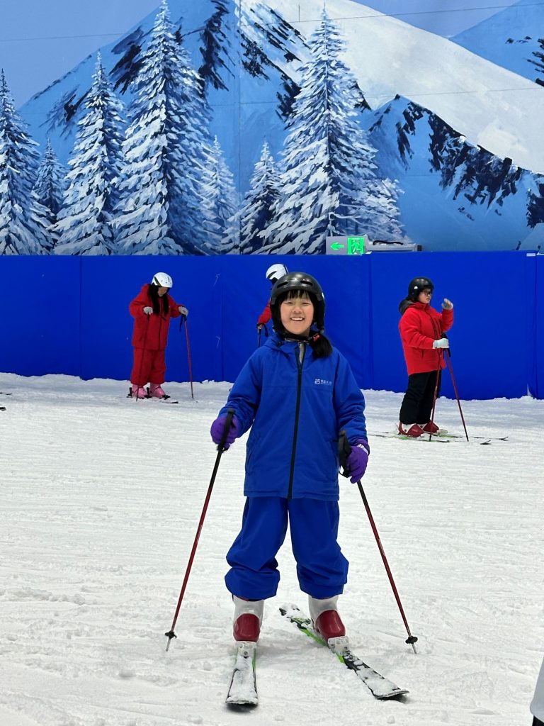 这是2026年1月底恩雅10岁时一家人在日本北海道游玩时和爸爸的合影;以及2026年春节在井冈山滑雪时的恩雅的照片。